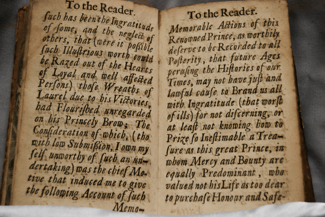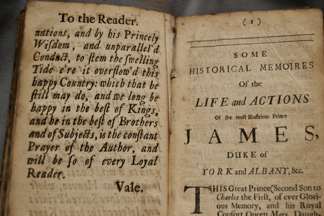 The Historical Memoires is a biography of the future king James II, published in 1683, 5 years before his ascension to the throne. Kevin Sharpe has described it as a ‘almost a campaign document’ for James’s succession (Rebranding Rule: The Restoration and Revolution Monarchy, 1660-1714, ebook – no page number). The book is a celebration of James’s qualities – personal, military, professional – and presents him as the best possible candidate for succeeding his brother, Charles II.