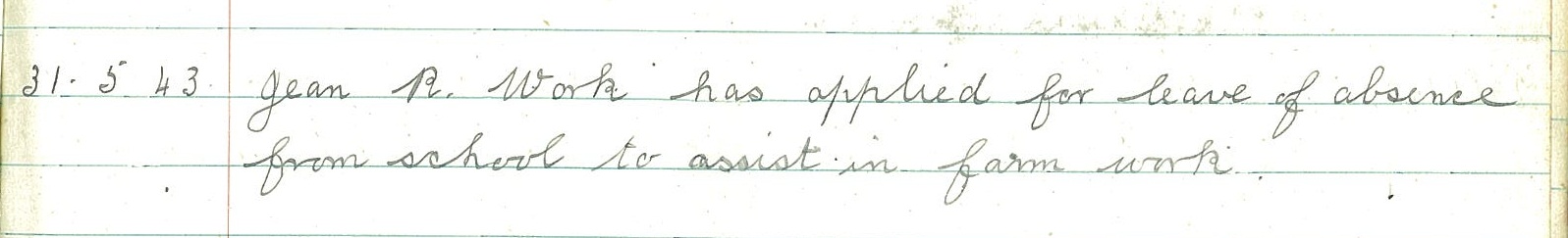 With spring well advanced, more children were being pulled out of school to help in the fields. The Head Teacher of Killimster School recorded in the log book on 31 May, “Jean R. Work has applied for leave of absence from school to assist in farm work.”