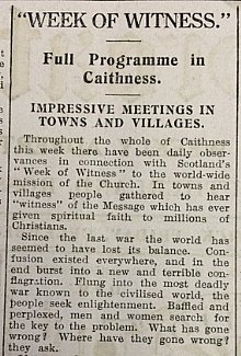 Back in Caithness, the people were participating in Scotland’s “Week of Witness” to the world-wide mission of the church. As the John O’Groat Journal observed, “In towns and villages people gathered to bear “witness” of the Message which has ever given spiritual faith to millions of Christians.”