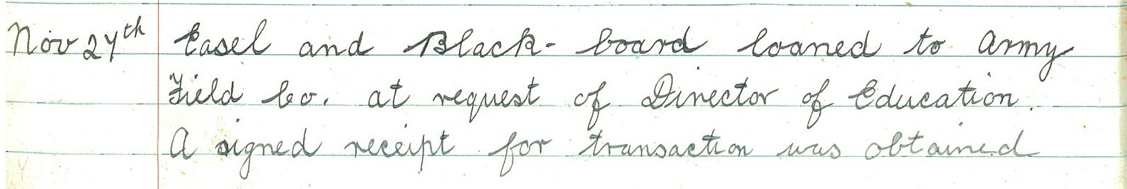 Killimster School recorded an unusual request in its log book on 27 November: “Easel and Black-board loaned to Army Field Co. at request of Director of Education. A signed receipt for transaction obtained.”
