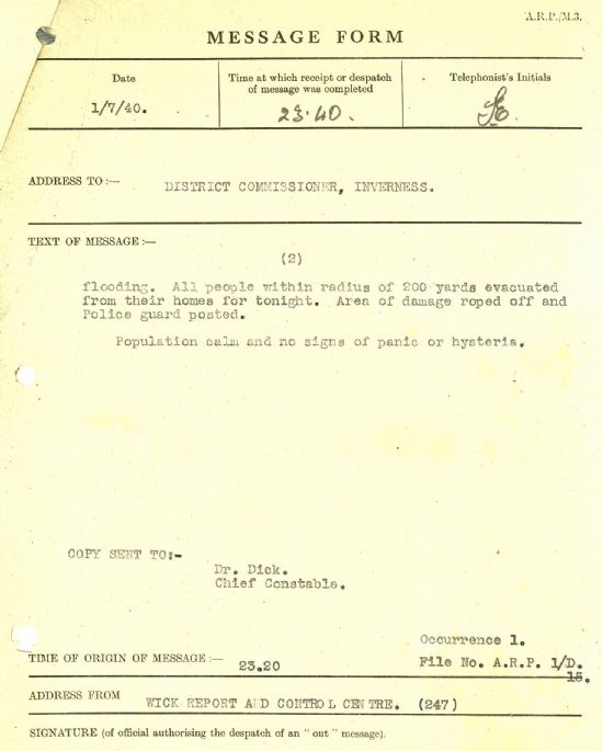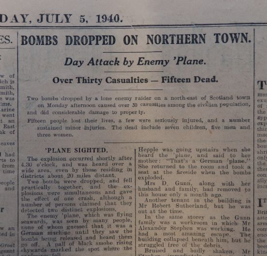 The John o’Groat Journal of 5 July printed a detailed report of the bombing and its aftermath, together with eyewitness accounts. A transcript of the report can be found by clicking on http://www.highlandarchives.org.uk/caithness-at-war.asp?id=46 or using the menu on the right had side of this page click on the page entitled ‘Week 44, 5th July John O’Groat Journal Newspaper Transcript’.