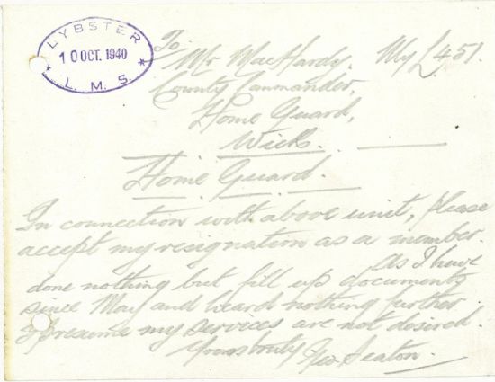 The Home Guard lost one of its members this week, as George Seaton of Lybster district resigned in sheer frustration at the bureaucracy: “As I have done nothing but fill up documents since May and heard nothing further I presume my services are not desired.”
