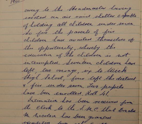 many other schools in the county, Thrumster Public School had been granted a concession “for pupils under seven years of age to attend school owing to the Headmaster having erected an air raid shelter capable of holding all children under seven”. (How the children felt about this “concession” is not recorded!)