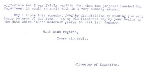 Still on the subject of education, the Council had long enforced a policy of not employing married women as teachers – one lady on the point of marriage was asked to resign last year. There is a certain irony, therefore, in a letter from the Director on 9 January in which he is forced to admit, “I am sorry that in this county we are just keeping our heads above water with the assistance of married women. There is no surplus teacher in the county as far as I am aware.”