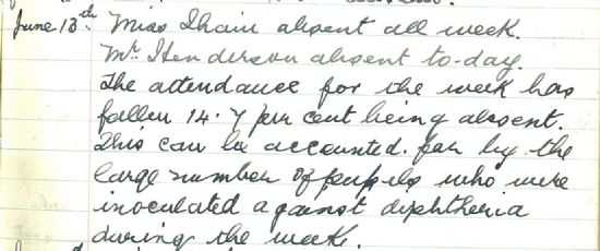Meanwhile, schools experienced a sudden drop in attendances which many head teachers attributed to inoculations just ahead of the summer holidays. The log book of Wick North School on 13 June records: “The attendance for the week has fallen 14.7 per cent. This can be accounted for by the large number of pupils who were inoculated against diphtheria during the week.”
