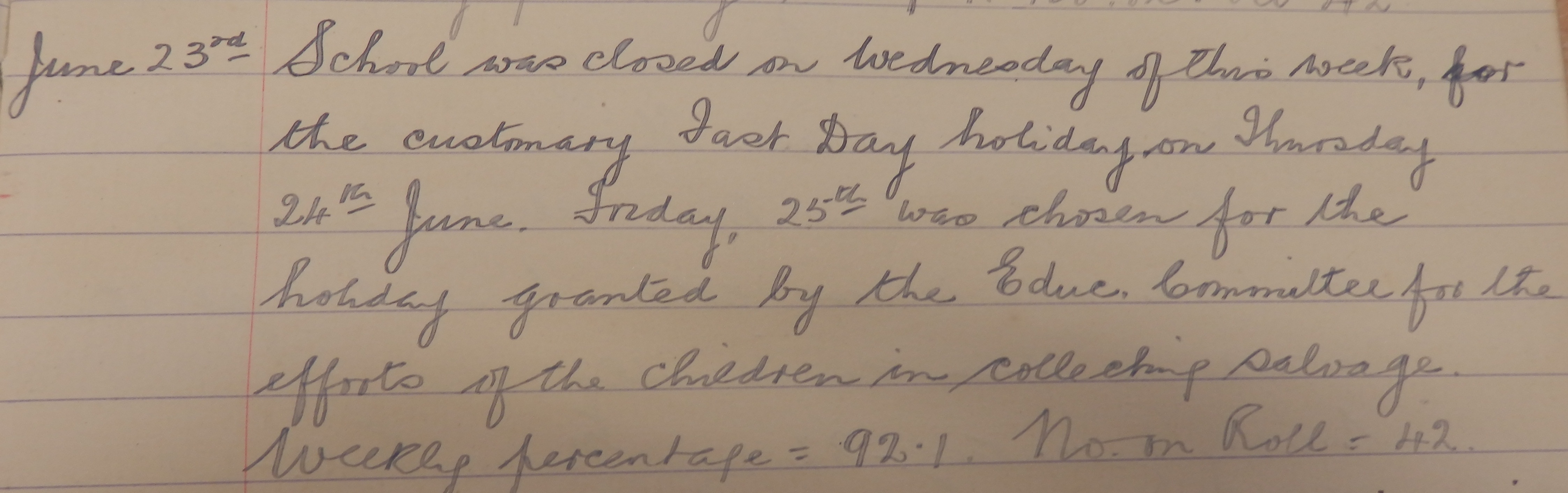 A number of schools in the county had special holidays this week in recognition of their efforts in the war effort. In the case of Ackergill School near Wick the log book records, “Monday of this week the pupils had a holiday as a reward for collecting salvage throughout the year.”