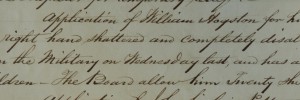 This month’s featured document is from the Wick Parochial Board Minutes of 2 March 1847 (reference CC/7/10/1). It reads as follows: “Application for William Hogston for himself having got his right hand shattered and completely disabled by a shot from the Military on Wednesday last, and has a wife and five children. The Board allow… Read more »Read more