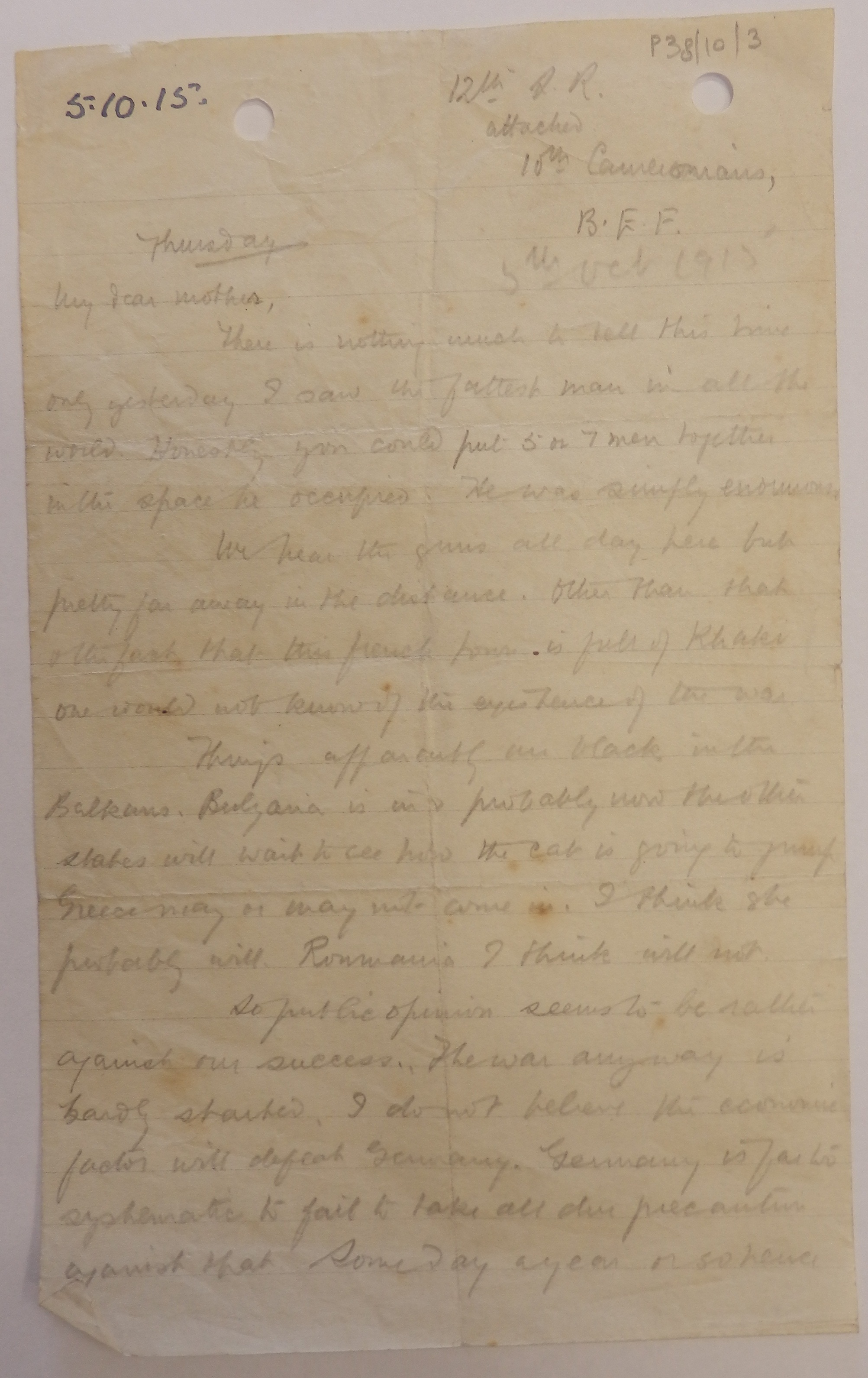 Thursday 5 October 1915, 12th [Scottish Rifles], Attached 10th Cameronians, B.E.F.