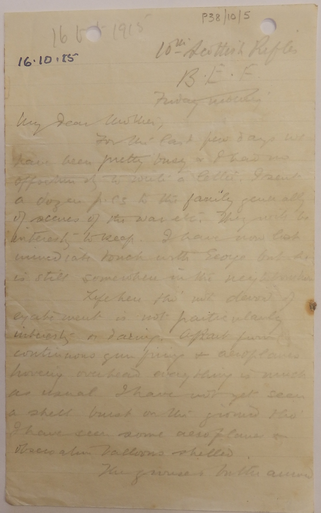 Dated: Friday morning 16 October 1915, 10th Scottish Rifles, B.E.F.
