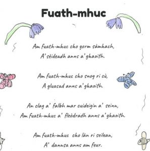 Entries closed at the end of June, and after much discussion over the sunny summer season, Rona and Pamela selected Jasmine King’s entry ‘Song of the Wildflowers’ (Morar) as the English-language poem winner.