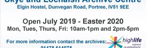 Our new exhibition is now available at the Skye and Lochalsh Archive Centre in Portree during our usual opening hours: Mon, Tues, Thurs, Fri, from 10am-1pm and 2pm-5pm. There is no charge to access the exhibition. The exhibition considers some of the early visitors to Skye and Lochalsh and examines the topics of travel, accommodation, myths… Read more »Read more