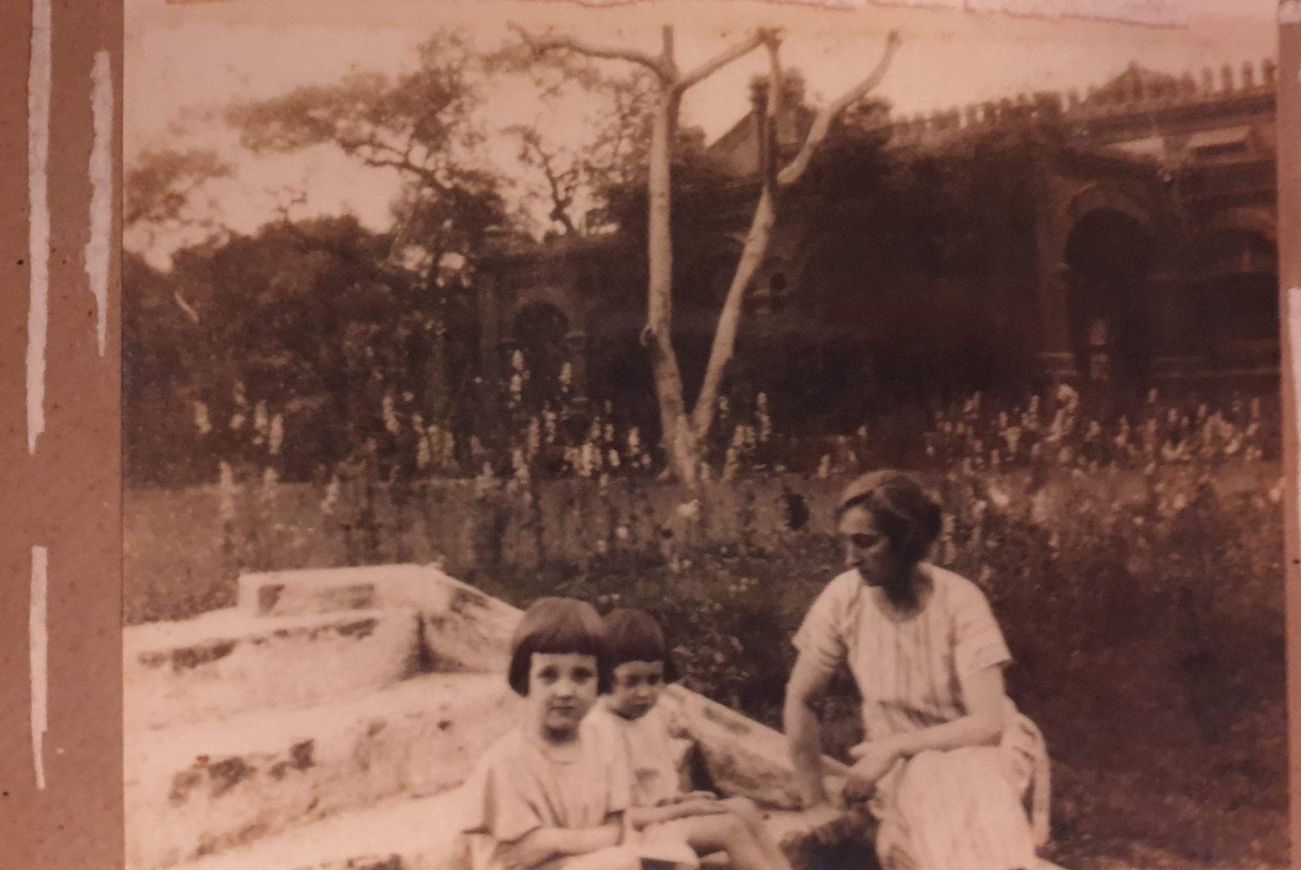The family at their residence in Kanpur in 1926. The caption reads “Cawnpore – C, M and Mammy in the compound.” [SL/D188/1/3/7/8]