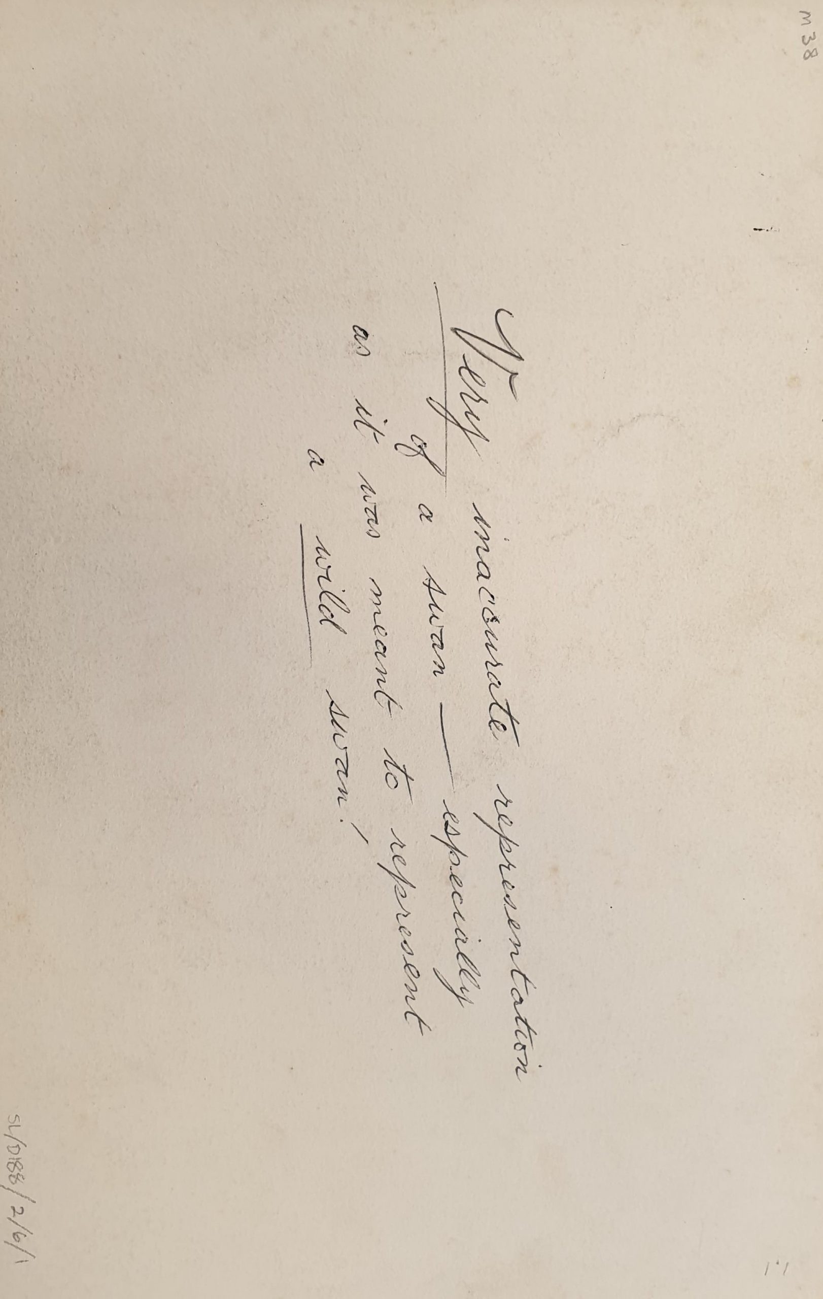 Mairead’s criticism of her own work: “Very inaccurate representation of a swan – especially as it was meant to represent a wild swan!” [SL/D188/2/6/1]