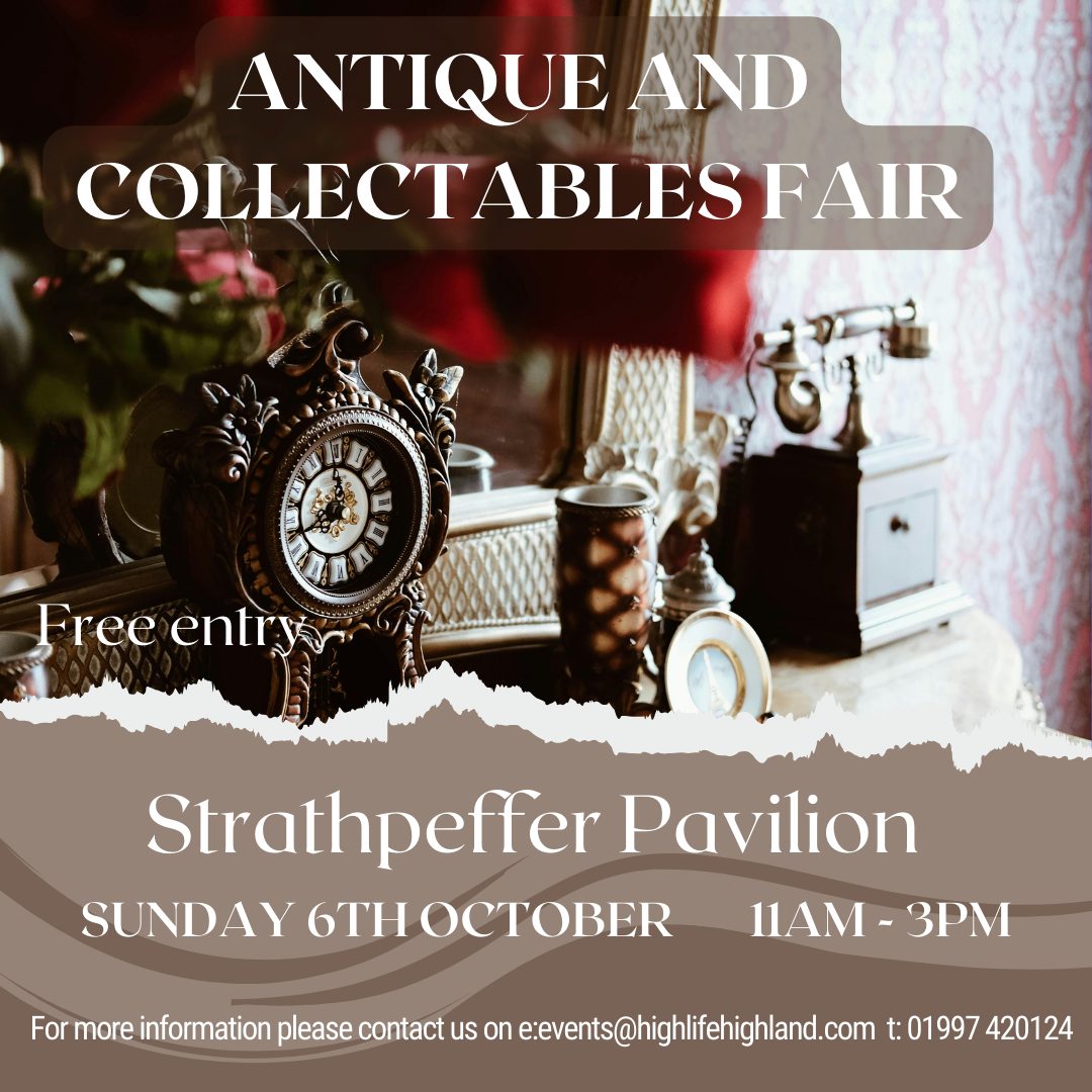 Our Antique and Collectables Fair at Strathpeffer Pavilion is host to up to 40 dealers and enthusiasts selling an eclectic mix of antiques and collectables. These will vary from small furniture, vintage jewellery, coins, toys and much much more.