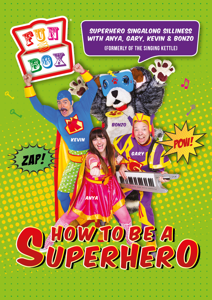 Join Anya, Kevin, Gary and Bonzo (formerly of The Singing Kettle) for some singalong silliness as they take the super steps needed to become ultimate heroes! But what do superheroes eat? Is super smell a proper power? And how do we get our keys to open the Funbox?