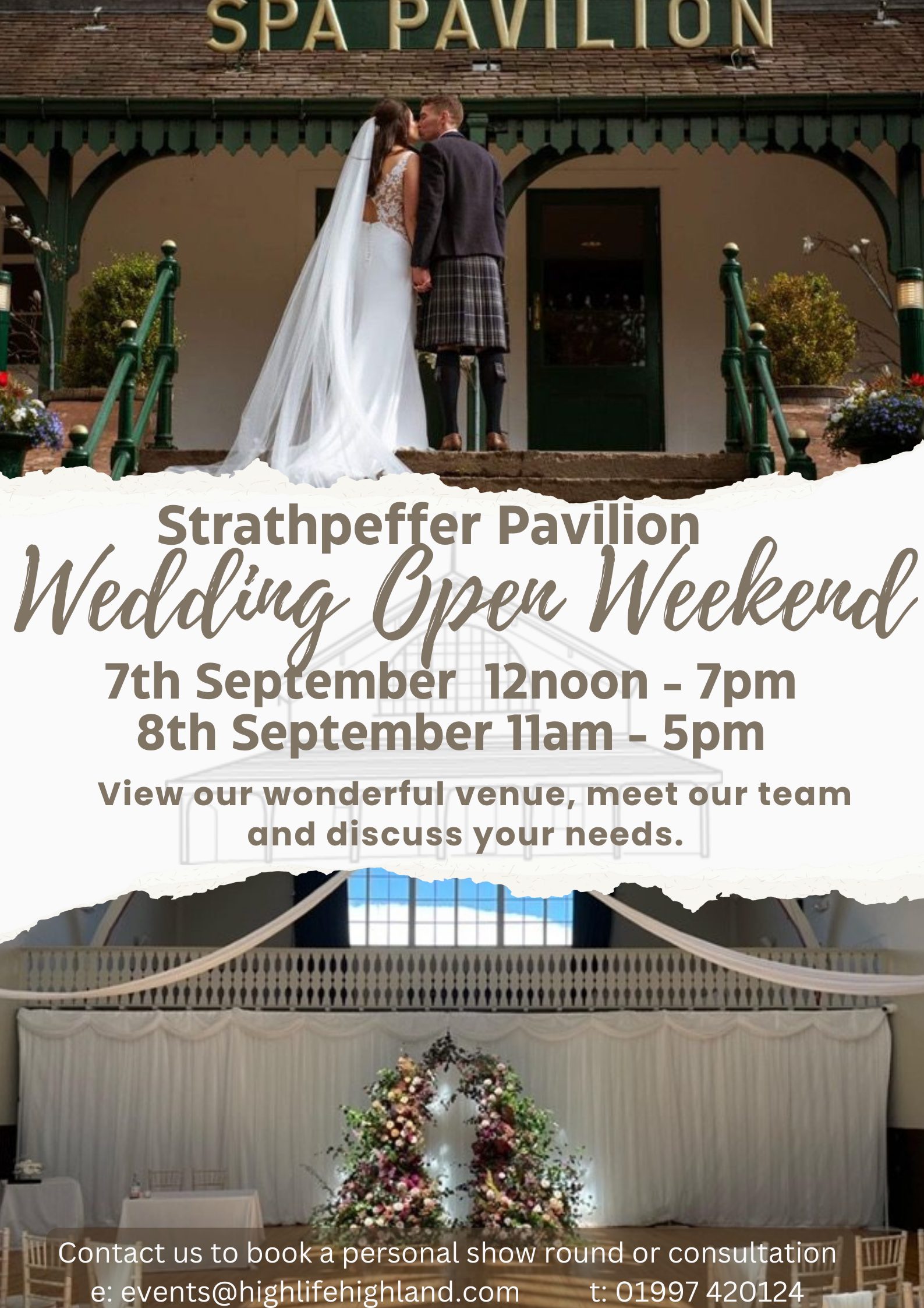Join us at Strathpeffer Pavilion for our Open Weekend in conjunction with Eva’s Covers. View our lovely Pavilion, meet our team and discuss your needs.