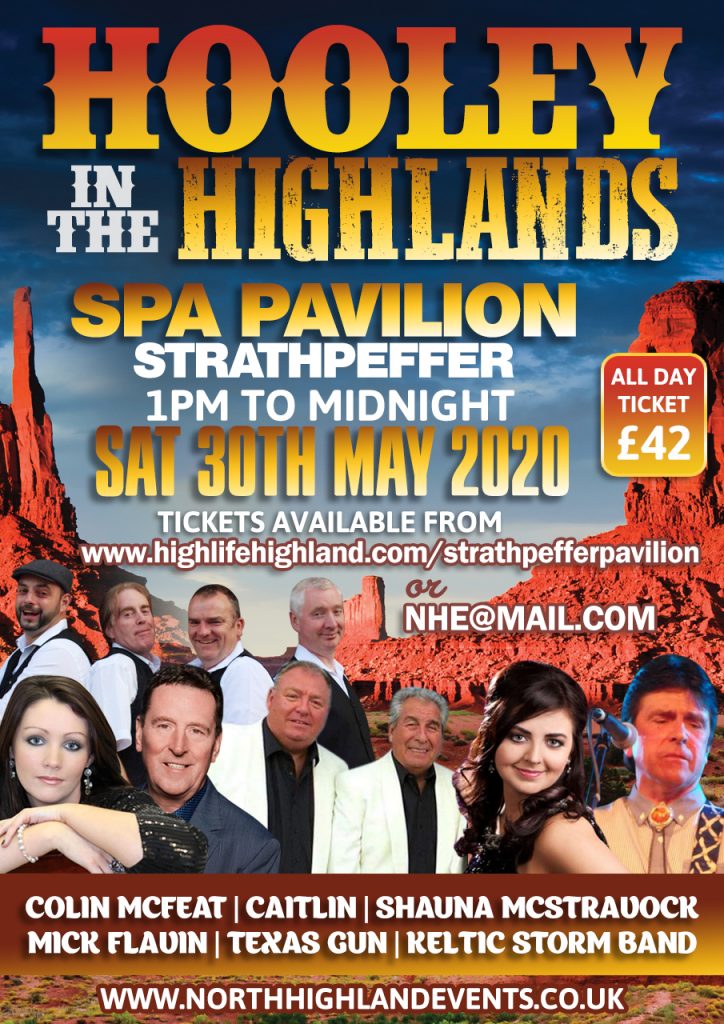 Join us for the annual Hooley In The Highlands in the beautiful Spa Pavilion in Strathpeffer. We have a fabulous line up of artistes ready to bring you the best in Country and Irish Country Music throughout the day and night. In addition we have a special guest artiste still to announce! Tickets available Dingwall Leisure Centre 01997420124