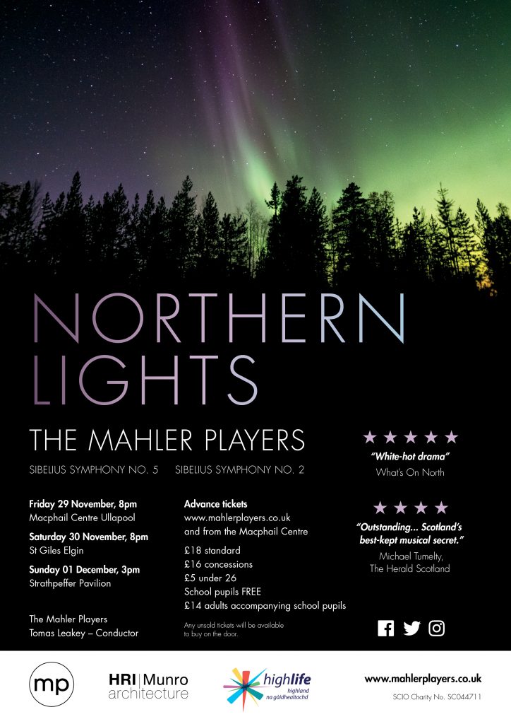 The Mahler Players return this winter with an all-Sibelius programme, featuring the Second and Fifth Symphonies arranged for 25 musicians. We continue our collaboration with Highlife Highland, meaning school-children have free tickets to these concerts. We hope to see you there! Sibelius Symphony No. 5 Sibelius Symphony No. 2 Tomas Leakey Conductor Our website link: https://www.mahlerplayers.co.uk/ Tickets available in advance through www.mahlerplayers.co.uk. Any unsold tickets will be available to buy at the door. £18 Full Price £16 Concessions £5 Under-26…