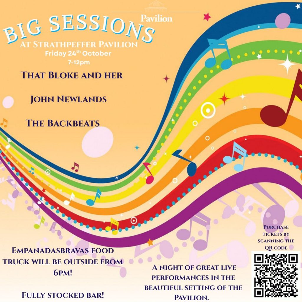 Come join us as we showcase local talent at our Big Sessions Main Hall Bar will be Open Empanadas Bravas will be here serving from their food truck (please note you can take food indoors) Cabaret Style, room for a wee dance Friday 24th October from 7pm Scan the QR code for ticket info or click the link below. We are looking forward to seeing everyone! The Backbeats The Travelling Siblings that bloke & Herself John Newlands
