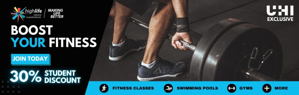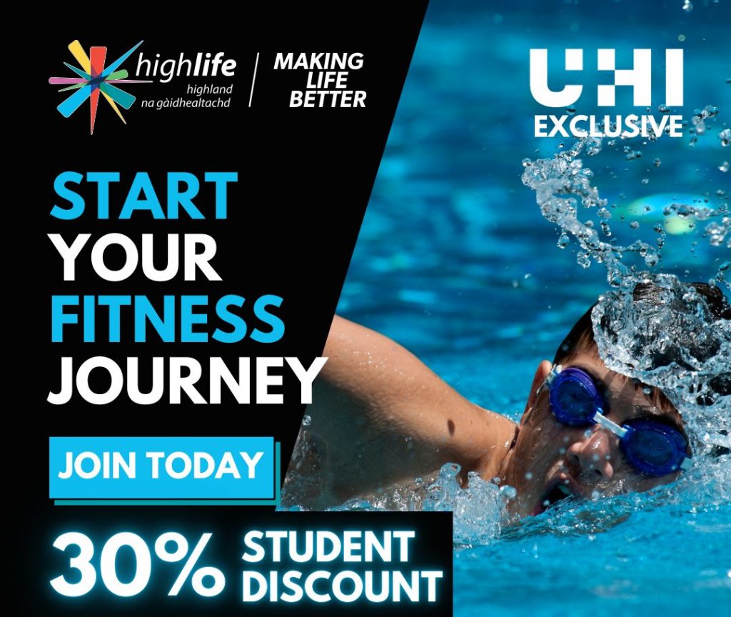 Save big and stay fit! Join highlife on an individual membership for only £20.30 per month as a UHI Student, or save 10% on a family membership, only £38.70 per month.